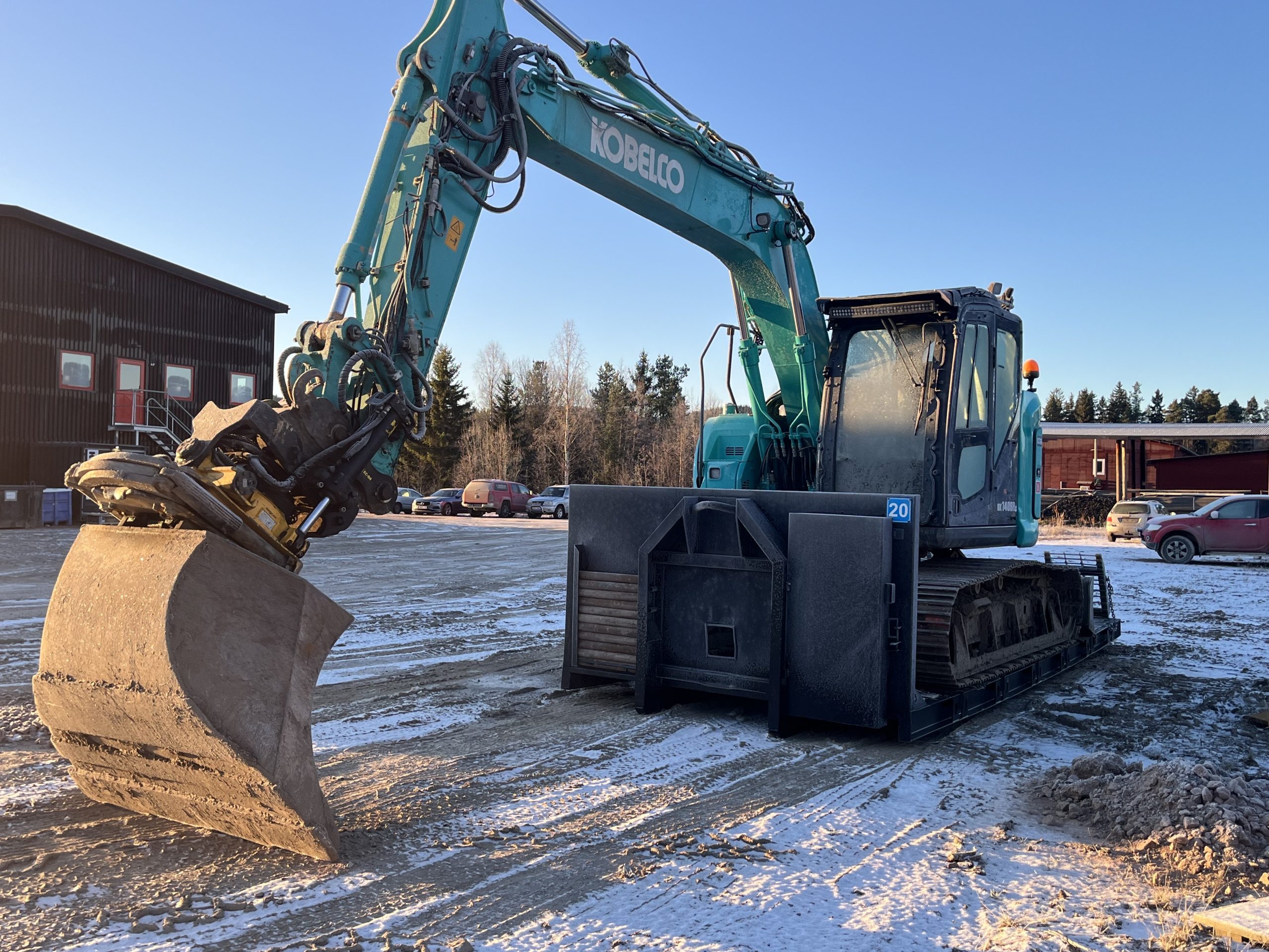 Vi tar även på oss grävuppdrag med vår bandgrävare. Denna utrustad med schaktblad som används vid enklare schaktarbeten. Men även gruskörning med våran Scania lastväxlare.