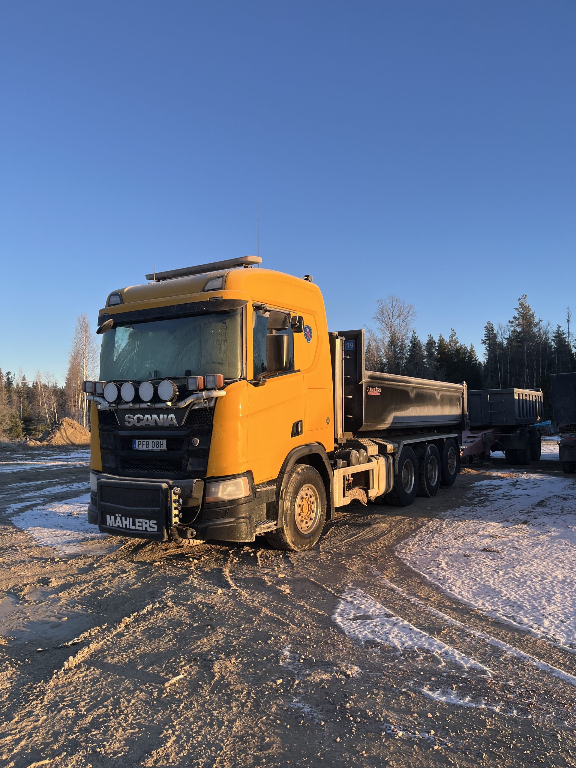 J Amréns Skogsmaskiner AB har idag även en lastväxlare, Scania R580. Den används främst till gruskörning och transport av olika massor. Men även för att köra ut våran grävare på olika uppdrag.